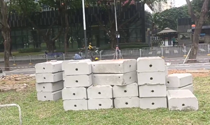 圍擋在地基比較軟的地方需要打地機固定水泥墩,旭東工廠可直供圍擋水泥塊。